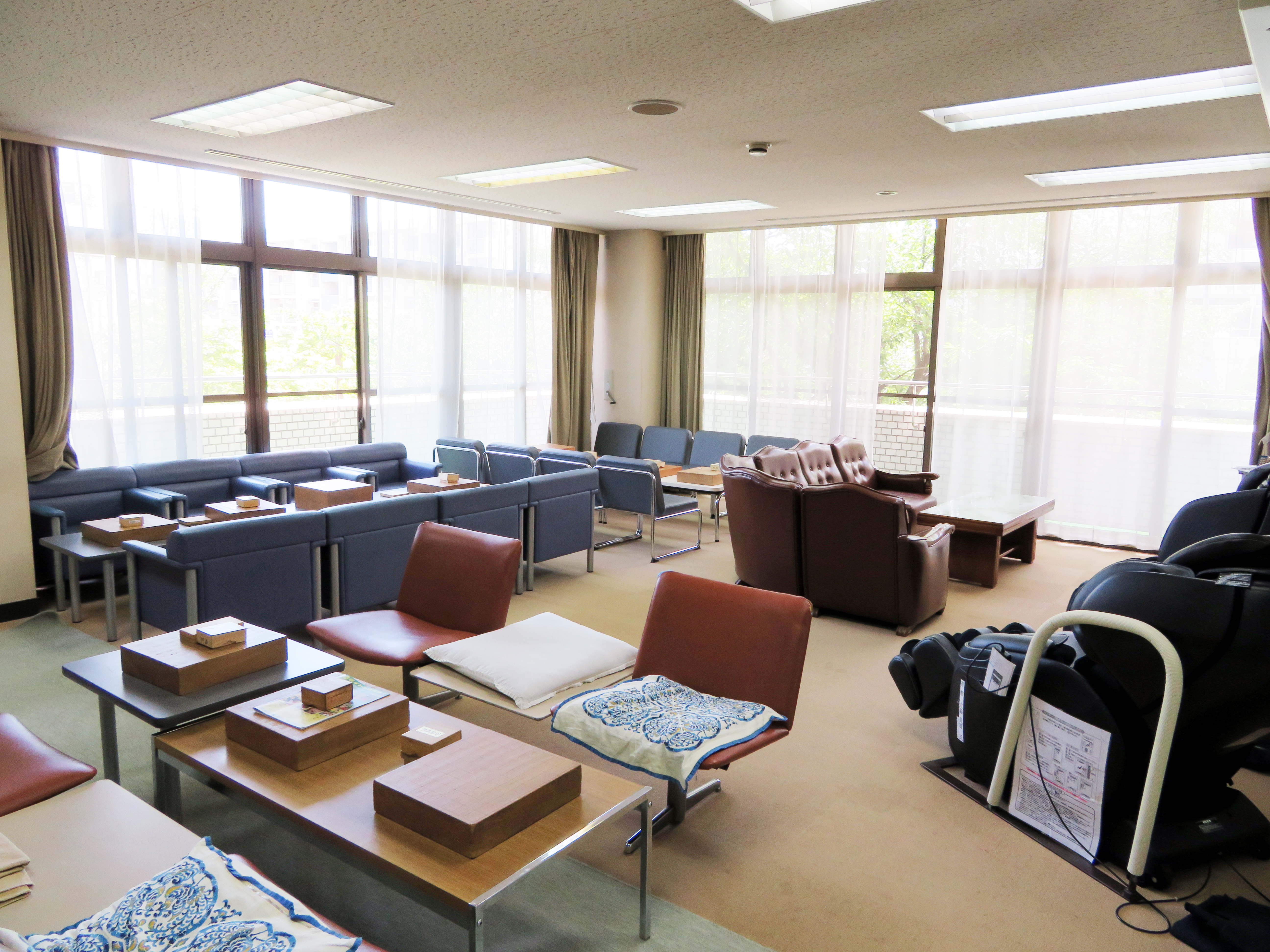 2階茶室の奥には「教養娯楽室・図書室」というお部屋があり、中では将棋やテレビを楽しむ方や、マッサージチェアに座りくつろぐ方もいます。